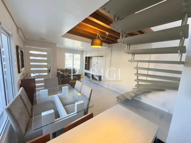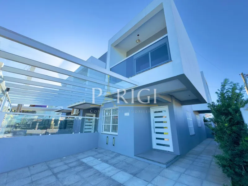 Sobrado de esquina muito bem localizado no centro de Tramandaí, ideal para quem busca conforto, elegância e funcionalidade em uma região residencial com excelente infraestrutura. O imóvel conta com duas suítes, sendo uma delas com sacada, além de sala de estar, jantar e cozinha integradas, lavabo, área de serviço e espaço destinado a escritório. Totalmente mobiliado, com móveis sob medida, ar-condicionado, piso porcelanato, acabamento em gesso, laje de concreto e churrasqueira. Possui pátio fechado e vaga para dois carros. Pronto para morar, com ambientes bem planejados e ótimo padrão de acabamento.