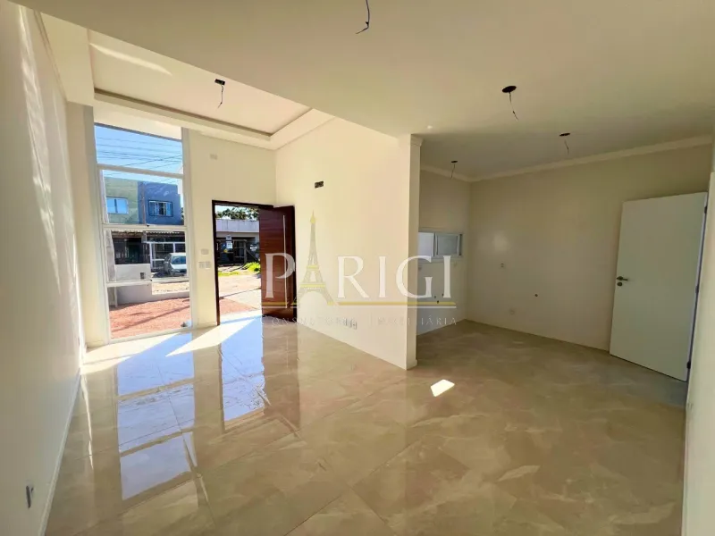 Localizada em bairro tranquilo e residencial, esta geminada nunca habitada oferece 76m² de área construída em um terreno de 6x25m (150m²). Possui dois dormitórios, sendo uma suíte, sala de estar com pé direito alto e sala de jantar integrada, cozinha funcional, dois banheiros, pátio na frente e nos fundos, além de área de serviço. Com acabamento de alta qualidade e excelente padrão construtivo, é perfeita para quem busca conforto, segurança e praticidade em uma residência nova, pronta para morar.