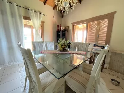 ???? **Espetacular casa de alto padrão à venda!** Com **5 dormitórios**, sendo 1 suíte e 4 suítes americanas, esta residência oferece conforto e exclusividade. Com **306 m² de área privativa** e um terreno de **9.902 m²** (equivalente a 3 terrenos), o imóvel dispõe de uma ampla sala de estar com lareira, cozinha moderna integrada à sala de jantar, lavabo, varanda acolhedora, área de serviço e garagem fechada para 3 carros, além de 3 vagas adicionais. Para o lazer, a casa conta com **piscina aquecida**, **jacuzzi** e uma churrasqueira perfeita para momentos em família. O sistema de **energia solar** garante eficiência energética. Com posição leste, a casa recebe excelente iluminação natural. Localizada em uma área privilegiada, é o refúgio ideal para quem busca tranquilidade, espaço e sofisticação. Agende uma visita e venha conhecer essa incrível oportunidade!