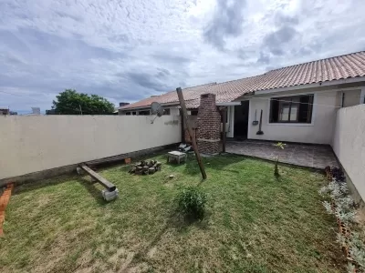**Casa Geminada com Espaço e Conforto para Sua Família** Apresentamos esta charmosa casa geminada, perfeita para quem busca um lar acolhedor e funcional. O imóvel é composto por dois dormitórios bem iluminados, banheiro social, sala de estar e jantar integradas, proporcionando ambientes amplos e confortáveis. A cozinha é prática e planejada, conectada ao pátio nos fundos, onde está localizado um quiosque com churrasqueira, ideal para momentos de lazer e convivência. Na área da frente, o pátio oferece espaço adicional para personalização. O imóvel conta ainda com área de serviço, garantindo mais praticidade no dia a dia. Não perca a oportunidade de conhecer este imóvel que combina conforto e excelente localização. Entre em contato e agende sua visita!