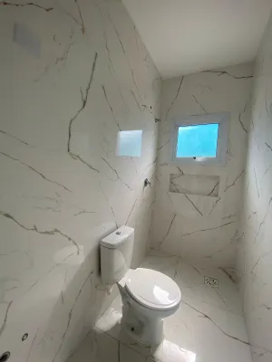 A segurança é garantida com cerca de vidro e portões social e para automóveis, enquanto o ambiente interno foi cuidadosamente planejado, com luminárias já instaladas e esquadrias externas em alumínio. As portas internas em PVC e a porta de entrada em alumínio amadeirado garantem um visual moderno e sofisticado. Para o seu lazer, o imóvel conta com uma lareira e churrasqueira, criando o espaço perfeito para momentos de confraternização com a família e amigos. Os acabamentos dos chuveiros são em monocomando, oferecendo ainda mais praticidade.